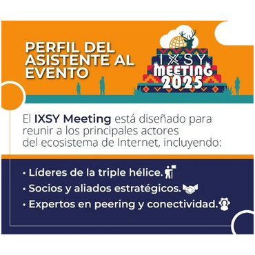 El IXSY Meeting es el evento anual que conecta a los líderes y expertos del ecosistema de Internet en un espacio único dedicado al peering, la conectividad, la ciberseguridad y la innovación digital. El evento es el punto de encuentro de las principales empresas de telecomunicaciones, operadores nacionales e internacionales, proveedores de redes de contenido y nube, centros de datos, cables submarinos, carriers, ISP y WISP; así como a los tomadores de decisiones de la redes de gobiernos, universidades y de empresas.